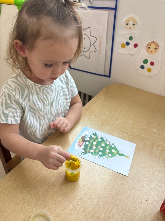 Наши малыши передали свои тёплые чувства через творчество. Дети с большим увлечением раскрашивали пальчиковыми красками яркие символы Нового года: пушистые ёлочки, праздничные подарки, снежинки. Каждый такой рисунок — это искреннее детское «спасибо».