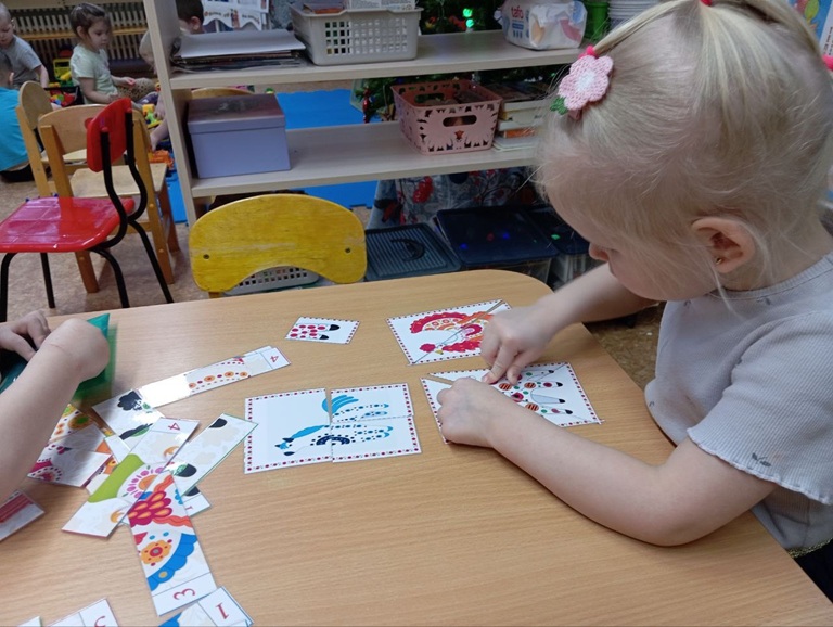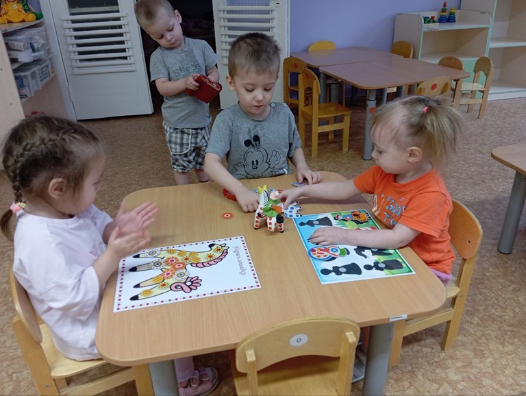 Дети с удовольствием раскрашивают игрушки, слушают потешки, собирают
