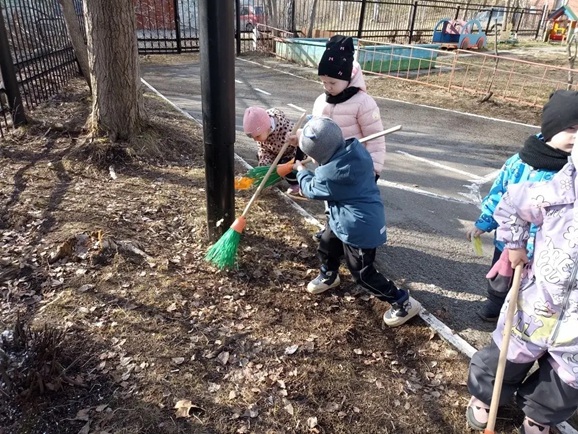Вооружившись граблями и метлами, участники акции навели чистоту на своих прогулочных участках. Основной фронт работ — уборка прошлогодней листвы, сухих веток и мусора, скопившегося за зиму. Ребята с удовольствием помогали взрослым сгребать листву в кучи, подметать дорожки и наводить уют