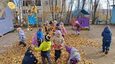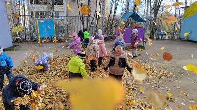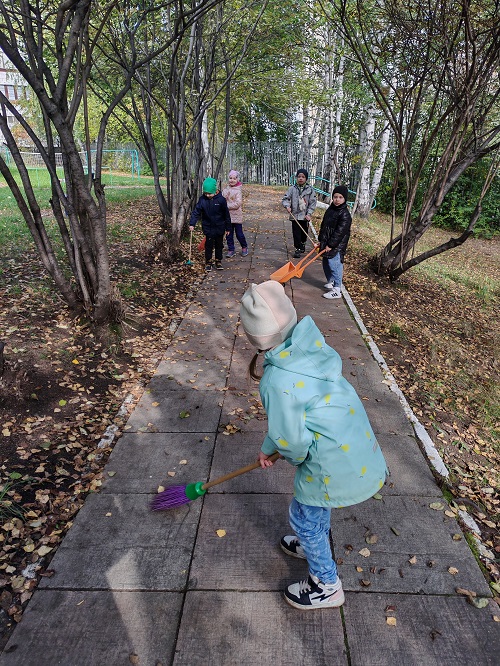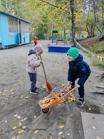 Осень - очаровательная пора! Яркий ковер из листьев день за днём устилает территорию детского сада, срывая последние листики с деревьев. Но осень — пора не только увядания природы, но и время веселых хлопот. Взрослые периодически выходят на уборку территорий и наши «Непоседы» сначала активно подключаются к их трудовой деятельности, а затем сами организуют самостоятельную деятельность по уборке опавшей листвы. Вместе с воспитателями рутинное занятие легко превращается в увлекательную игру: счастливая детвора сортирует листья по цвету и форме, пересчитывают их, составляют красивые осенние букеты, устраивают «листопад», подбрасывая собранные листья, что конечно же не может не вызывать всеобщего веселья. Такой подход формирует у детей не только желание помогать старшим, но и уважительное отношение к любому труду, показывая, что даже уборка может быть в радость!