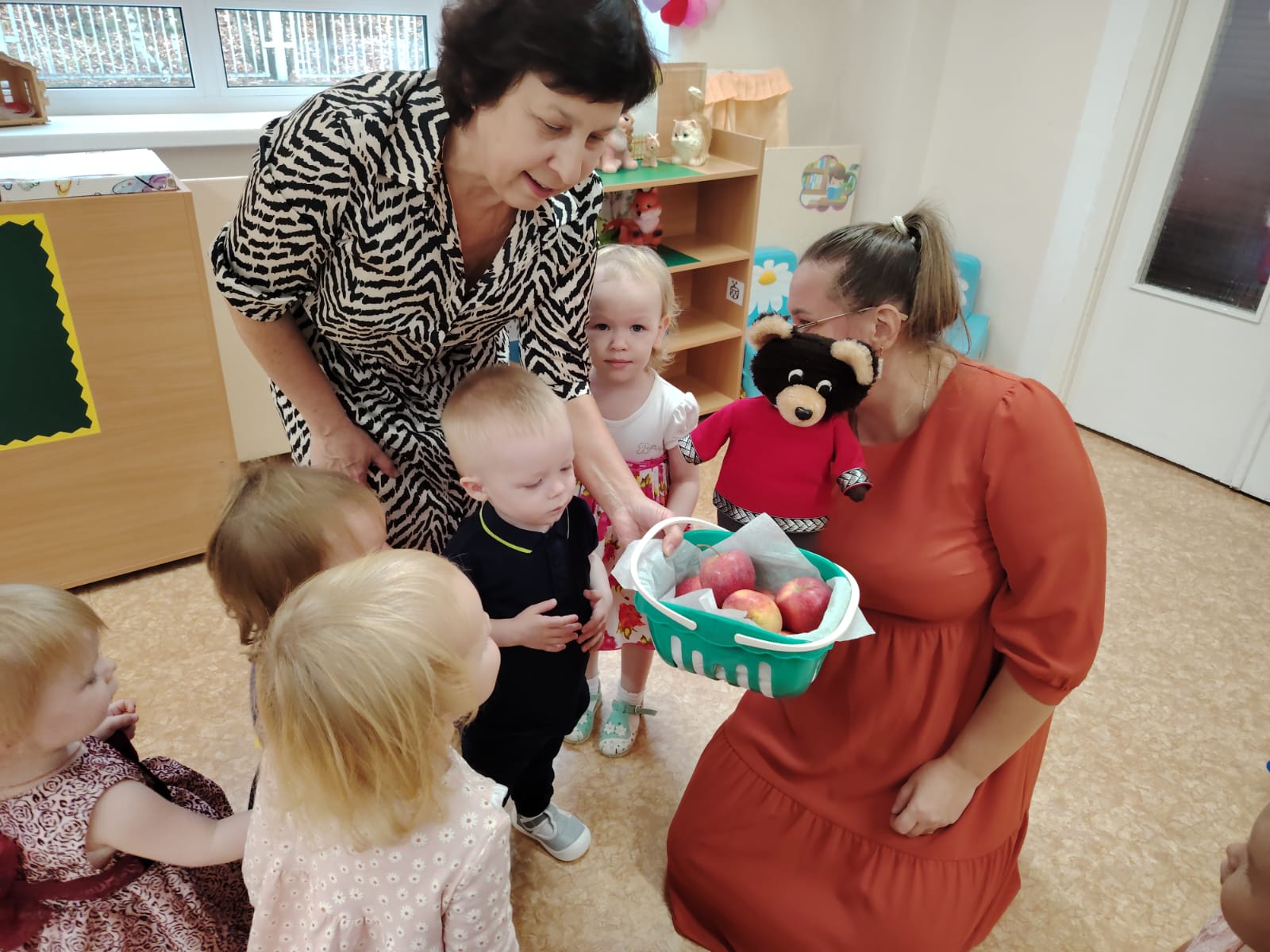 Но и конечно - какой праздник без угощения? Мишка подарил малышам вкусные осенние яблочки! А малыши получили положительные эмоции и радостное настроение.