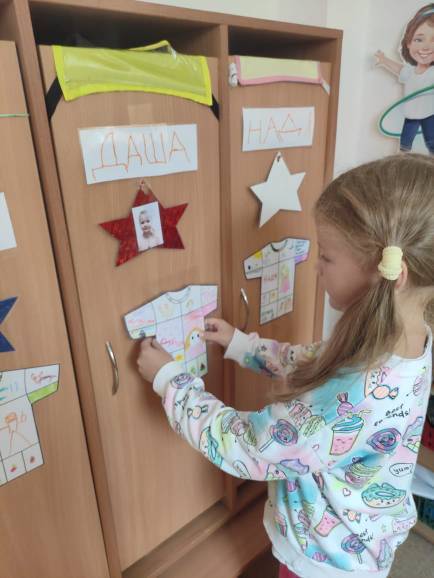 Еще мы обновили наши «рубашки» на шкафчики, где отражаются наши интересы. И уже ребята, открыв портфолио, понимают, что их интересы поменялись с тех пор, когда они были малышами.