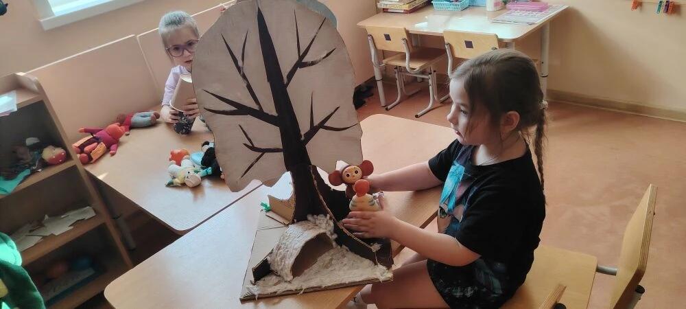 И в нашем саду тоже активно идет взросление наших ребят. Их взросление заметно во всех сферах детской деятельности, но особенно прослеживается в часы «Открытого времени выбора „Театр на ладошке“, одно из „11 чудес Надежды“, пользуется популярностью у мальчишек и девчонок. И если осенью они приходили и робко пробовали свои театральные способности, то сейчас смело и уверенно идут ставить целые спектакли не похожие один на другой. В них закручиваются интереснейшие сюжеты с разными, кажется не сочетаемыми между собой героями (например, Снежная королева и Чебурашка).