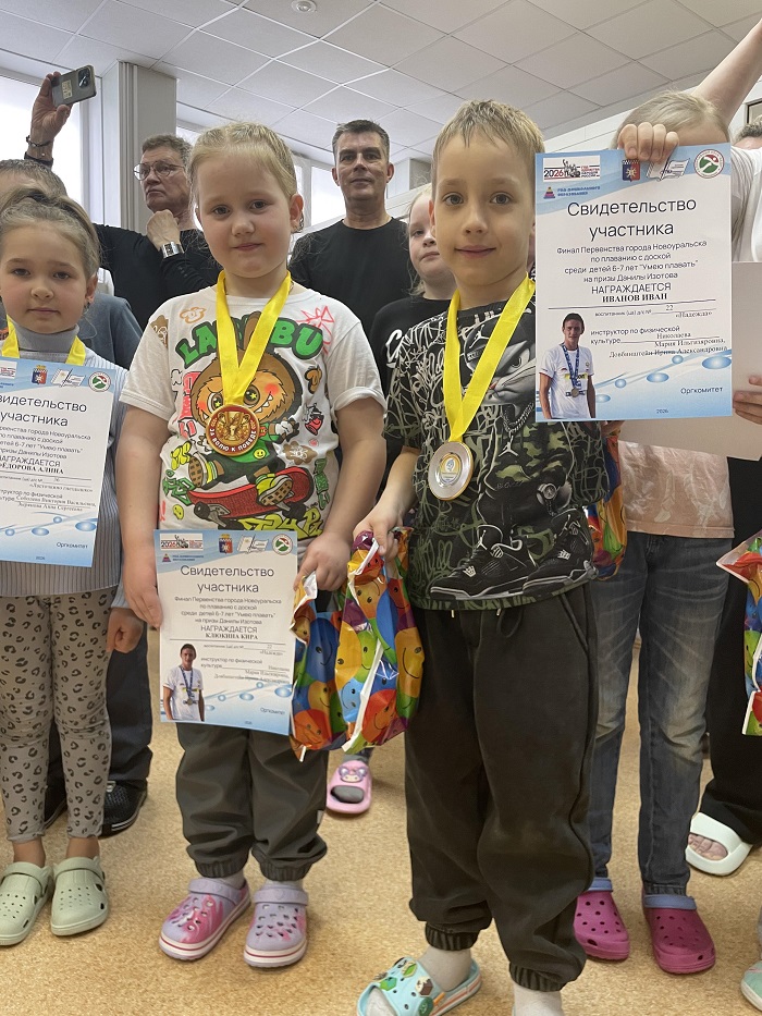 Наши спортсмены Кира и Иван достойно выступили проплыв 12 м на спине и груди! Ребята получили медали грамоты и сладкий приз! Поздравляем наших пловцов!