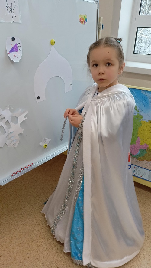 С утра девчонки подготовительных групп были наполнены волнительным ожиданием чуда - появлением Снегурочки. Время тянулось, а хотелось побыстрее увидеть русскую красавицу! И вот этот момент наступил, Полина строго следила за стрелками часов и объявила, что время пришло. Девочки не забыли захватить на встречу свои подарки, которые приготовили накануне и отправились в интерактивную студию. «А где же Снегурочка?»- спрашивали друг у друга девчонки. И тут она появилась…в расписной шубке, рукавичках и кокошнике. Не передать словами, как девочки заворожённо глядели на нашу Снегурочку, да рассматривали узоры на её наряде. Восхищение таилось в их глазах! Да уж не каждый день можно встретить такое чудо! Наши девчонки преподнесли гостье свои подарки.