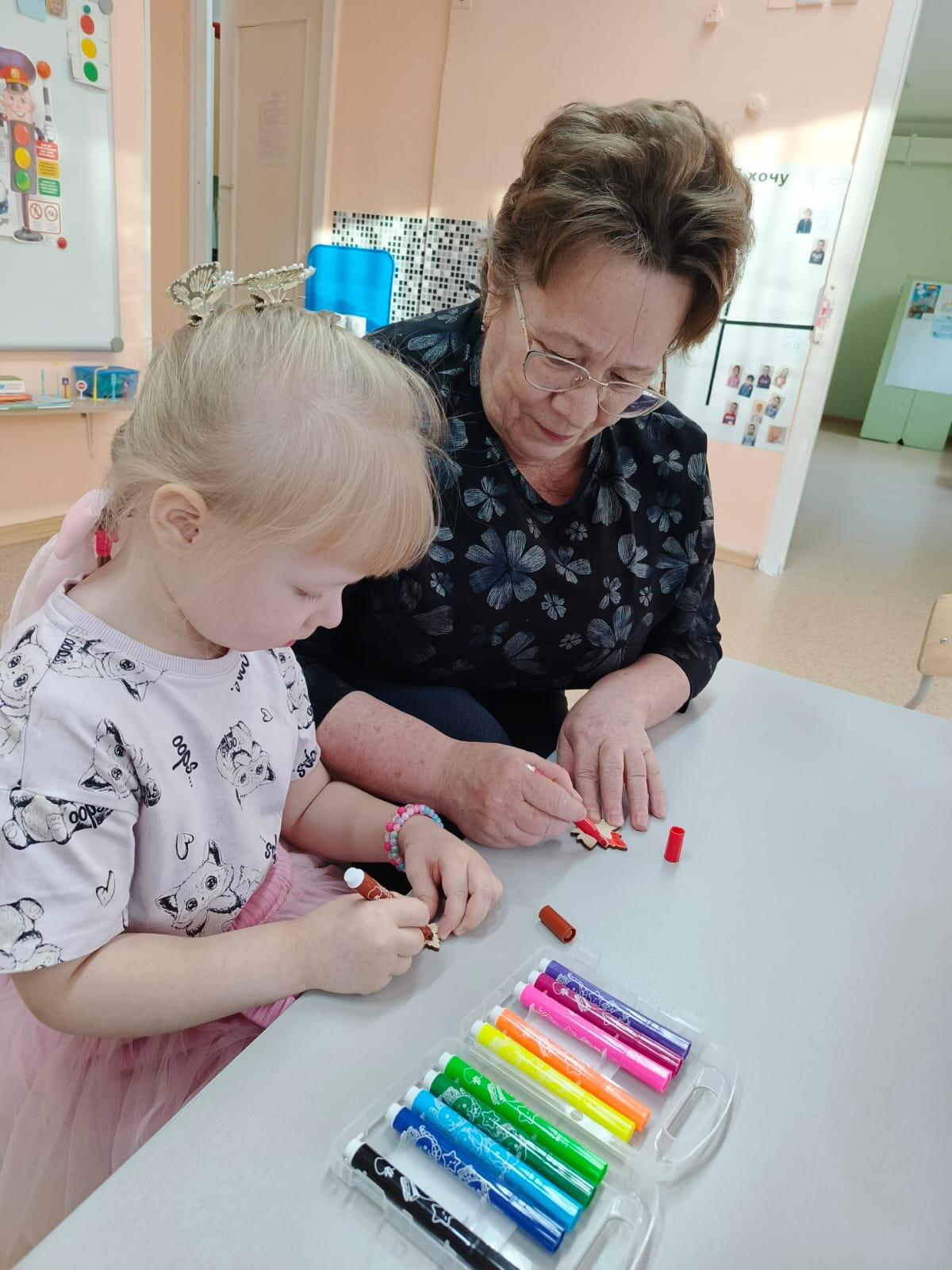 В октябре эта встреча состоялась в группе «Радуга», где приглашенные гости вместе со своими внучатами изготовили «Осеннюю брошь».