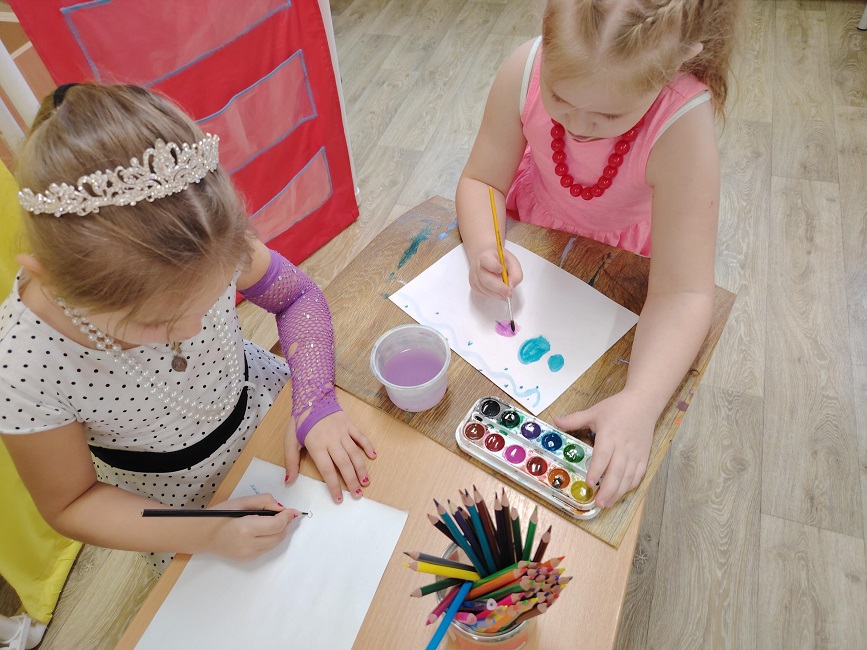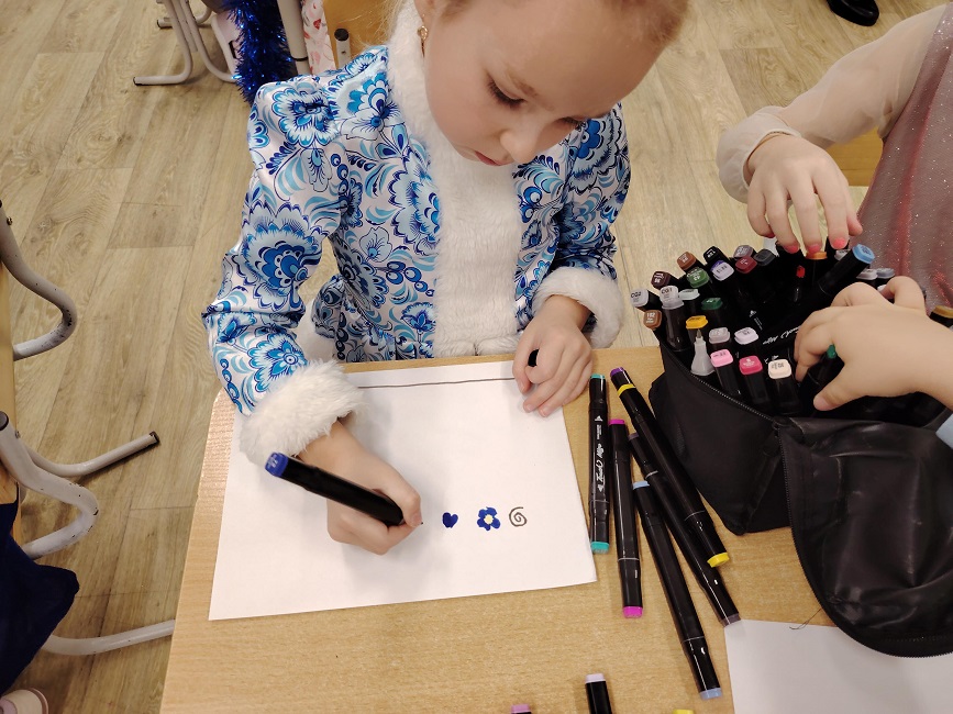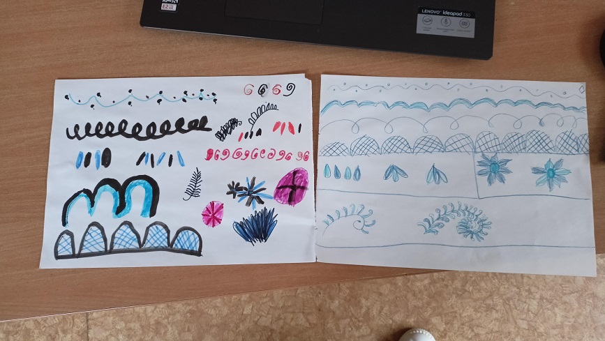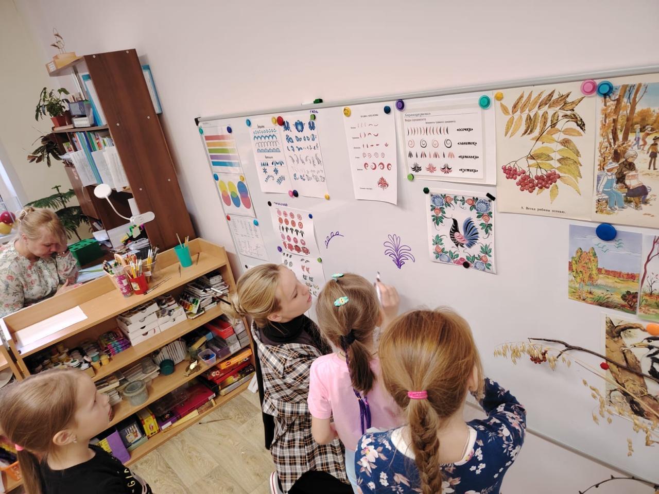 И закипела работа в художественной мастерской, тут и гжель и хохлома и палех, надо всё запомнить и воспроизвести витиеватый узор, кому какой понравится. Наши рукодельницы проявили фантазию и придумали свои узоры для нарядов. А что будет дальше, мы вам расскажем в следующий раз!