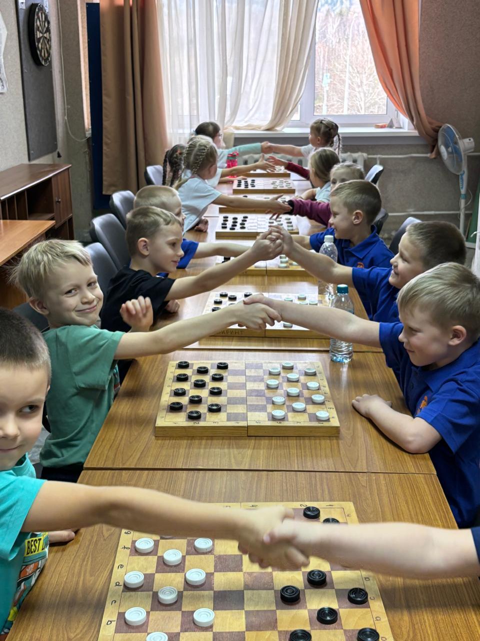 На нашем корабле «Надежда» ребята из групп «Звёздочка» и «Сказка» с энтузиазмом играют в шашки. Они готовятся к городскому турниру и усердно тренируются. Каждый день дети много времени проводят за игрой, продумывая ходы и стратегии.
