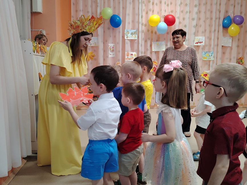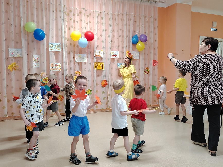 Наши ребята чудесно прочитали стихи великих русских поэтов об осенней поре. Прослушали музыкальное произведение П. И. Чайковского «Осенняя песенка», которое детям очень понравилось. Потанцевал вместе с осенью и осенними листьями