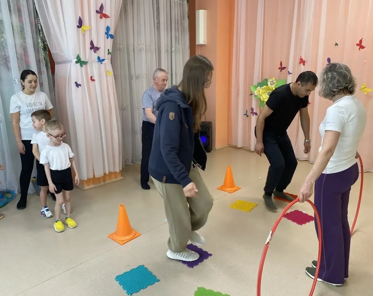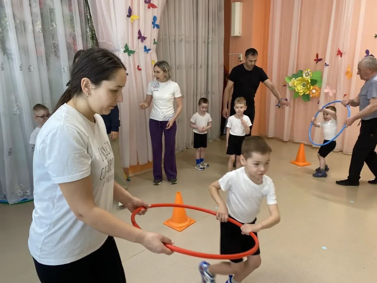 Парная гимнастика с родителями в детском саду — это нетрадиционная форма работы, которая сочетает физическое воспитание и укрепление детско-родительских отношений. Она предполагает выполнение упражнений в паре: взрослый (родитель, бабушка, дедушка или старший брат/сестра) и ребёнок выполняют движения совместно, что способствует не только физическому развитию, но и эмоциональному сближению.