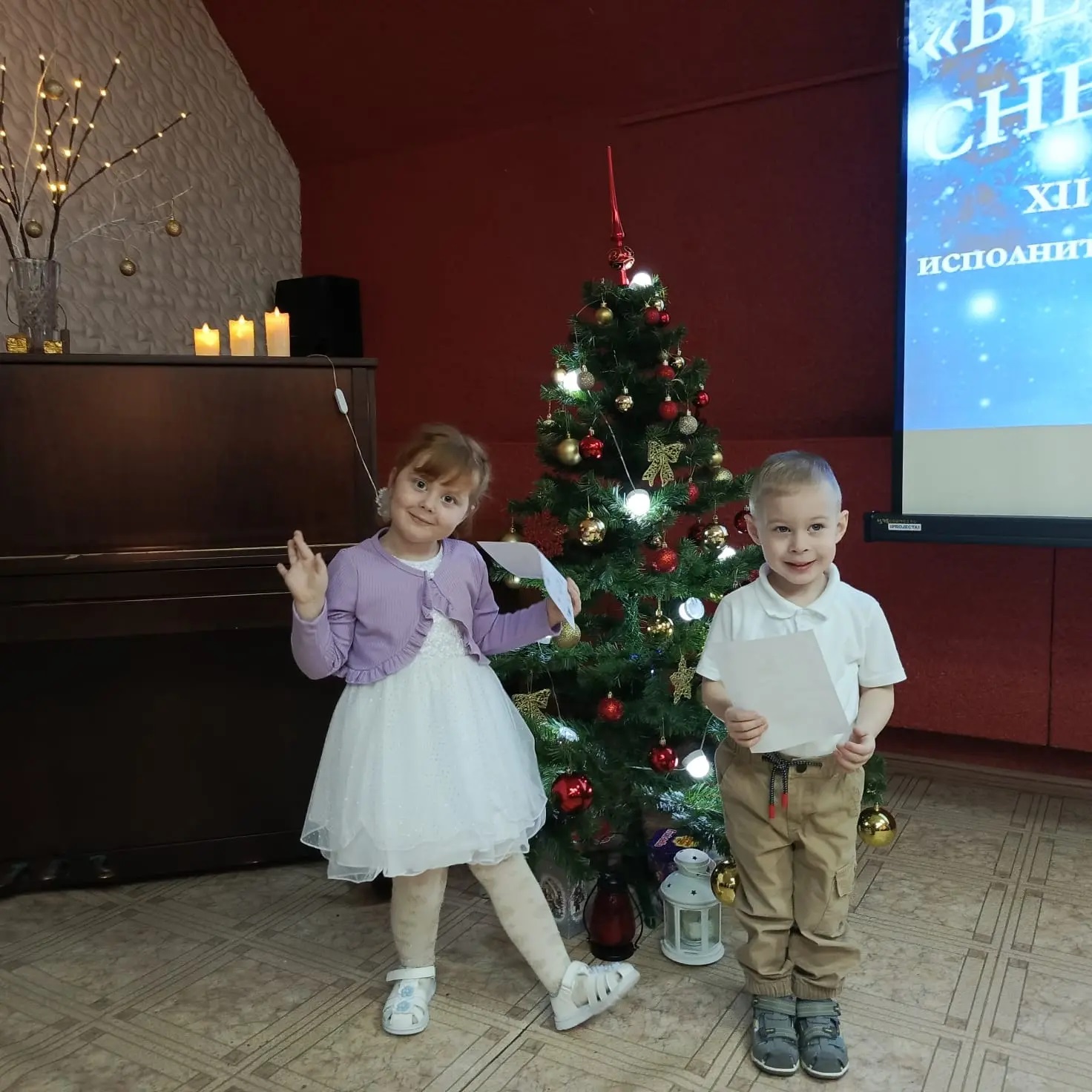Конкурс «Белые снежинки» – это прекрасная возможность для маленьких творцов проявить себя, раскрыть свой талант и получить признание. Несмотря на свой юный возраст, Комарова Анастасия и Калякин Матвей постарались показать всю свою индивидуальность в декламации стихов. Их исполнение было проникнуто эмоциями, искренностью и выразительностью. Юные артисты уверенно держались на сцене, демонстрируя прекрасные актерские качества.