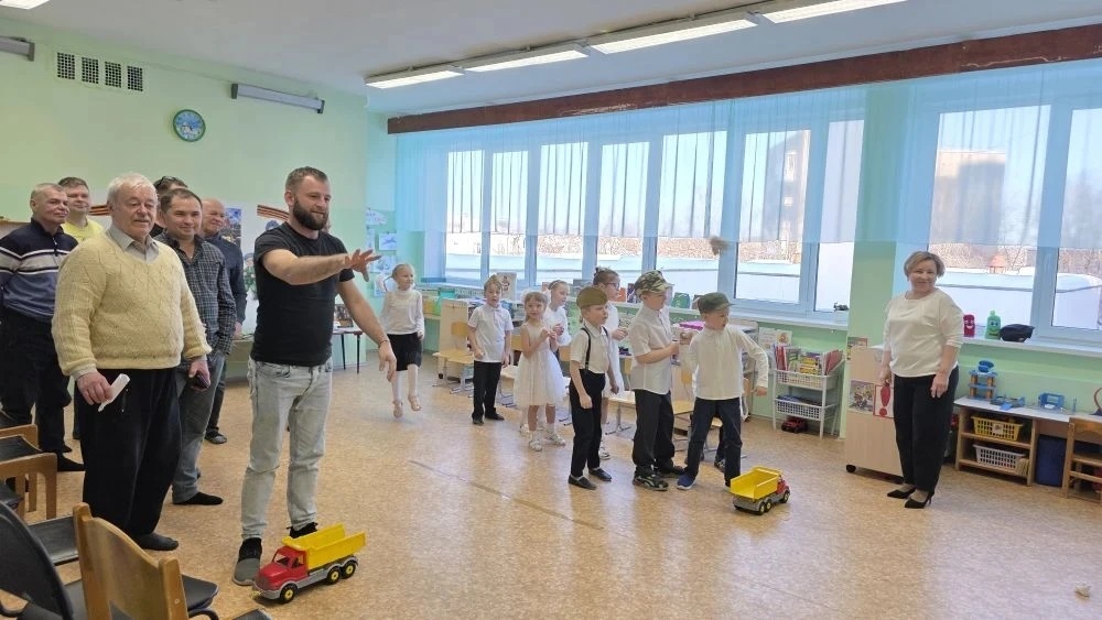 В преддверии праздника в группе «Умка» детского сада № 49 «Дом радости» состоялся настоящий фестиваль мужества и доблести. Улыбались ребята, сияли от гордости за своих ребят папы и дедушки!