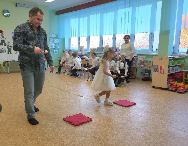 Но главное событие дня — веселые спортивные состязания! Эстафета стала настоящим испытанием командного духа и умения поддерживать друг друга. Дети и взрослые вместе прыгали через препятствия, попадали в цель и соревновались, кто быстрее и осторожнее доставит груз. Но главным призом было вовсе не первое место — вся группа убедилась, что настоящая сила заключается в дружбе и поддержке товарищей!