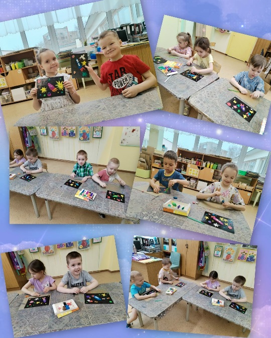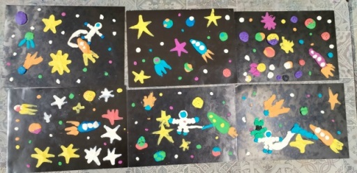 После такого вдохновляющего знакомства ребятишки решили сами создать собственные картины, в том числе и с помощью пластилина — звезды, ракеты и даже космических пришельцев!