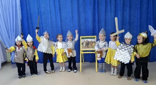 В преддверии праздника в группе «Любознайки» детского сада № 49 «Дом радости» был реализован творческо-тематический проект «В гостях у сказки про богатырей», с целью формирования у детей эмоционально-положительного и понятного образа защитника через сказочные и художественные образы; воспитания нравственно-патриотических чувств через интеграцию различных видов детской деятельности.