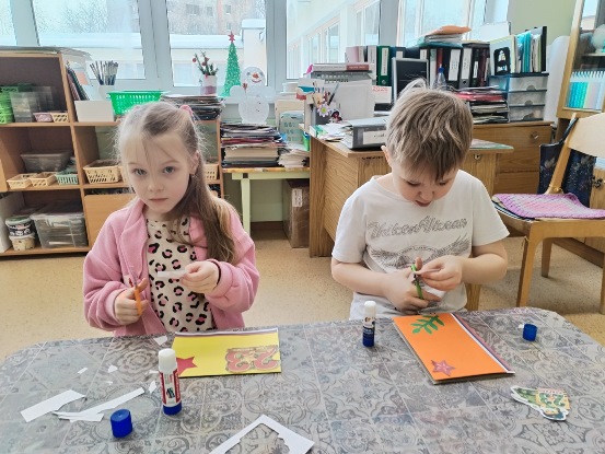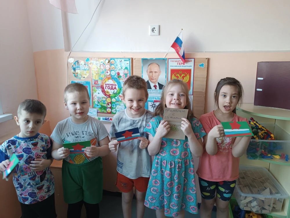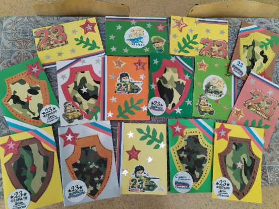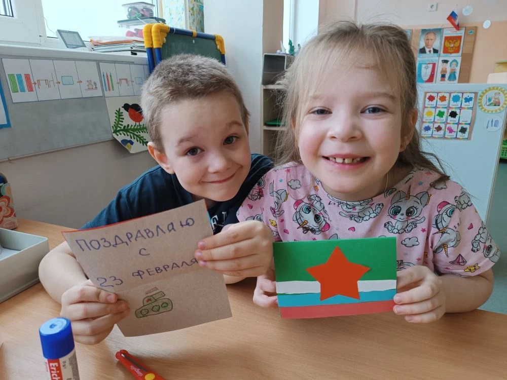 В преддверии праздника Дня защитника Отечества воспитанники детского сада № 49 «Дом радости» приняли участие в социальной акции, посвященной поздравлениям военнослужащих СВО. Ребята групп «Умка» и «Звездочки» вместе с воспитателем по изодеятельности активно включились в творческую работу и изготовили яркие тематические открытки.
