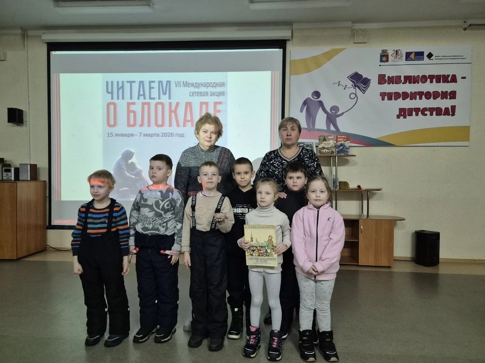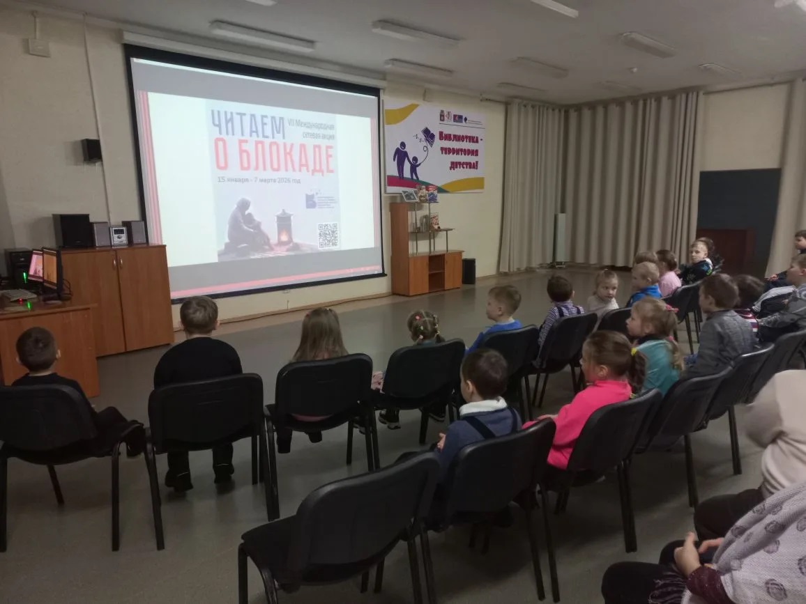 Воспитанники групп «Звездочка», «Умка» и «Ягодки» детского сада № 49 «Дом радости» побывали в МБУК «Публичная библиотека» на памятном мероприятии, посвящённом Дню снятия блокады Ленинграда в 1944 году. С замиранием сердца дети смотрели кадры кинохроники, слушали песни, рассказ библиотекаря и отрывки из книги Веры Пановой о тех страшных днях.