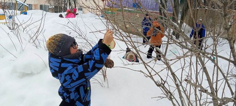 Акция очень актуальна в это время года. Съедобная кормушка для птиц изготовлена своими руками только из природных материалов. Такая кормушка безопасна, как для окружающей среды, так и для птиц, она исчезает после того, как птицы «используют» ее по прямому назначению.