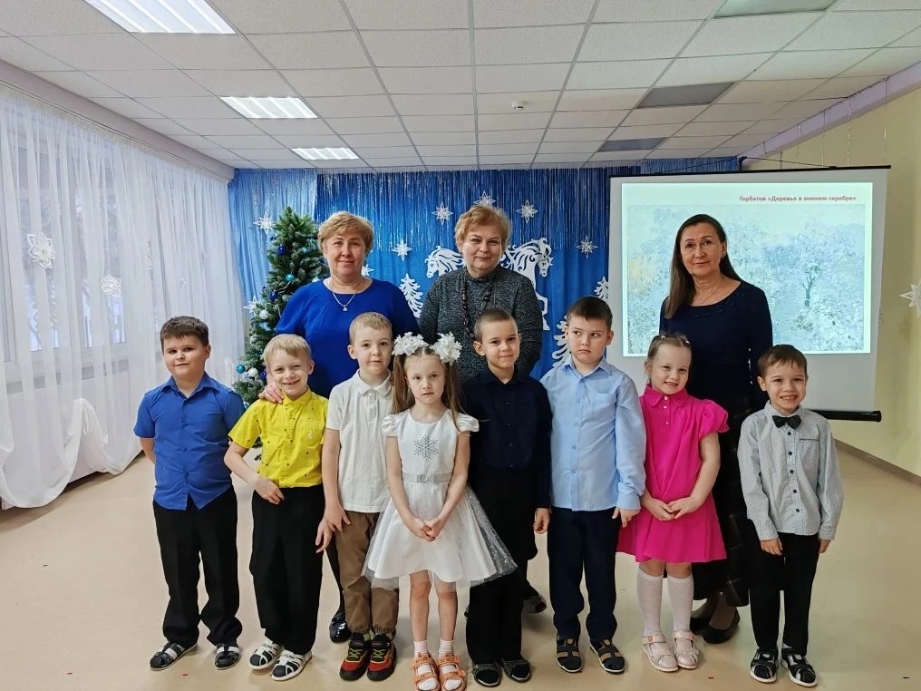 Ребята с удовольствием читали замечательные зимние стихи, подготовленные воспитателями и учителями-логопедами. Звучала нежная музыка Антонио Вивальди и Петра Ильича Чайковского, подобранная нашим талантливым музыкальным руководителем Светланой Александровной. Под эту чарующую мелодию юные зрители наслаждались прекрасными картинами зимних пейзажей, созданными великими художниками.