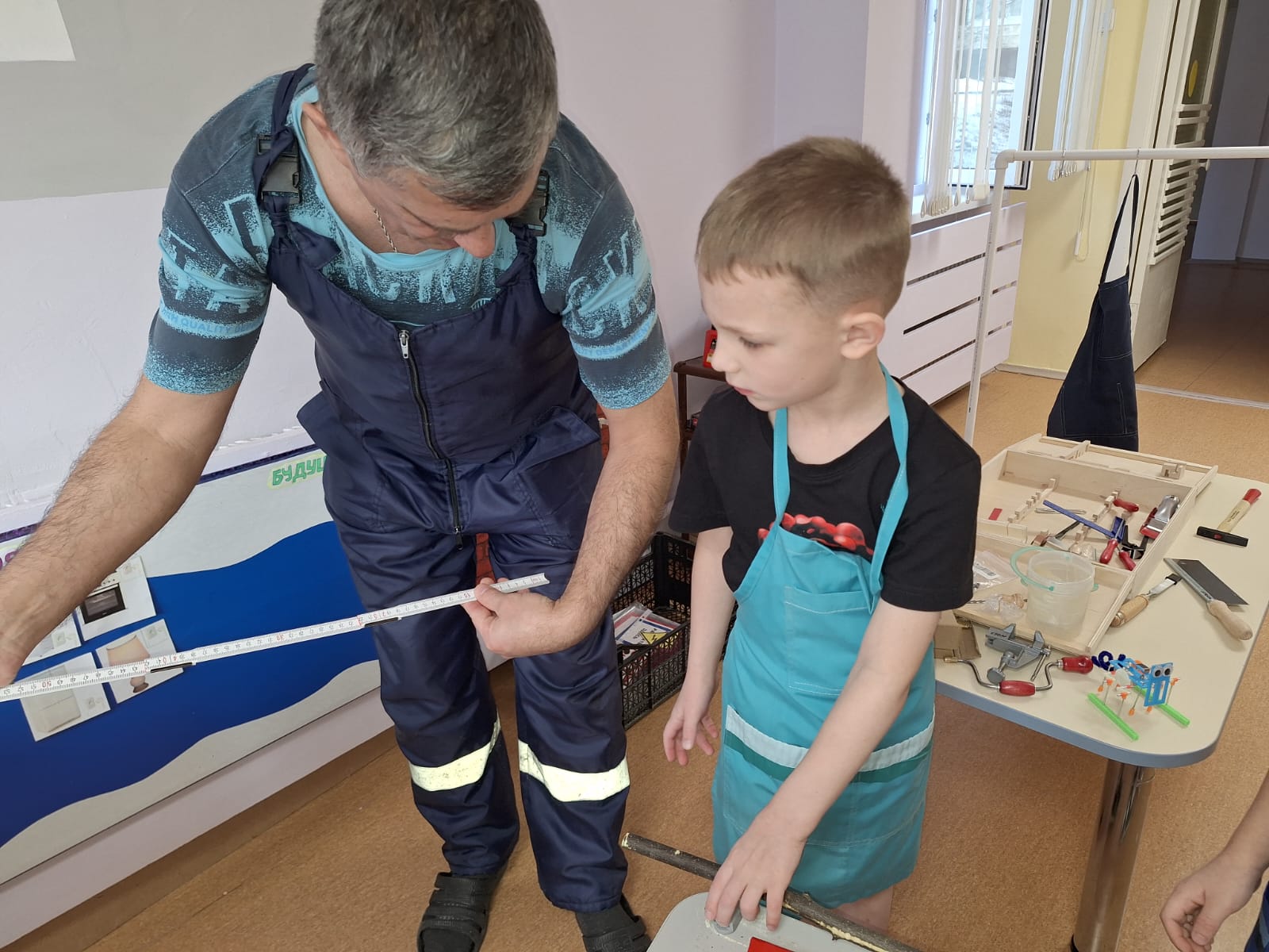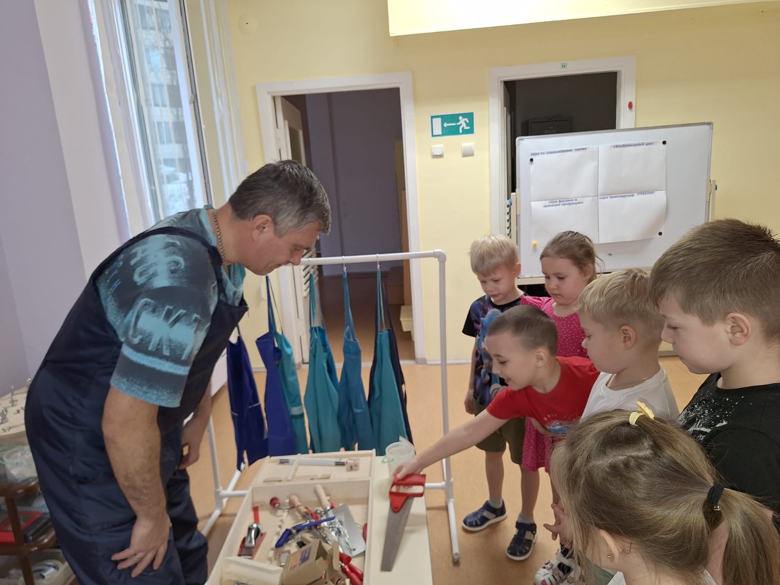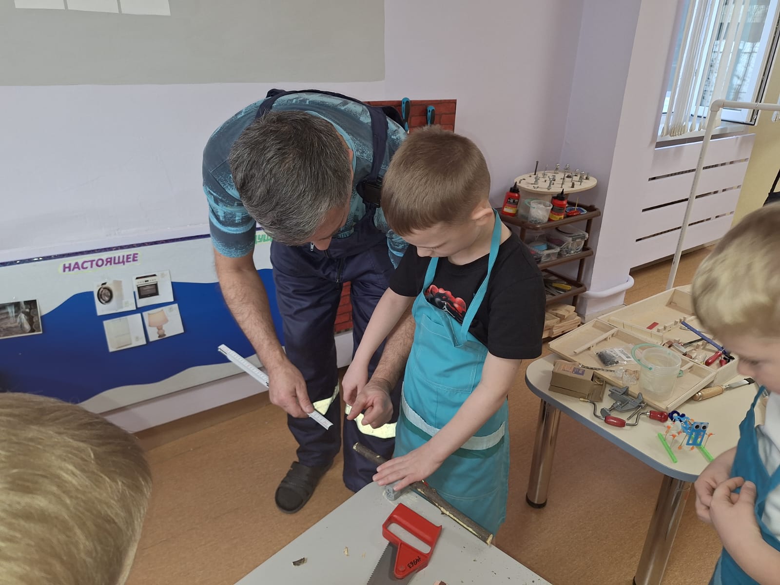 Наш гость показал детям различные столярные инструменты, которые использует в работе: пилы, стамески, рубанки и многое другое. Ребята с интересом рассматривали предметы и задавали множество вопросов. Антон Владимирович поделился своими секретами мастерства и продемонстрировал, как эти инструменты помогают создавать красивые и полезные вещи.