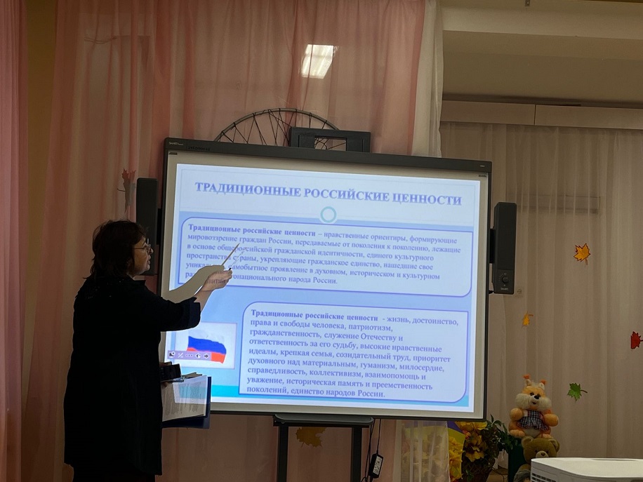 Педагоги рассмотрели вопросы о ключевых ценностях современного воспитания, заявленные в Рабочей программе воспитания ФОП ДО, они на практике познакомились с системой навигационных приемов в области воспитания личности ребенка из опыта работы педагогов детского сада № 51 «Лесовичок», позволяющие «проращивать» ценности в сознании и сердце ребёнка.