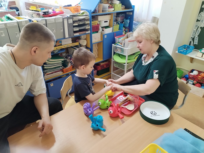 Педагоги группы «Рябинка» Панкратова Н. Е. и Патрушева Т. П. «играли» с детьми и родителями, применяя нейродефектологические подходы. Эти игры- упражнения позволяют создать новые нейронные связи и улучшить межполушарное взаимодействие, которое является основой развития интеллекта. Только при совместных усилиях педагогов, родителей и детей могут быть достигнуты положительные сдвиги в развитии детей с ОВЗ.