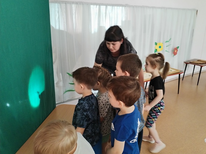 Воспитатель Керова И. А. и музыкальный руководитель Лобанова И. А. подготовили детей к появлению весной первых насекомых. Теперь малыши знают, чем отличаются насекомые от всех других живых существ. А теневой театр помог оживить этих маленьких жителей природы, «живые» насекомые вызвали восторг и стали настоящим чудом для малышей.