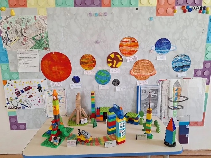 Из конструктора LEGO дети построили космодромы, ракеты, центры управления полётами. Сколько сосредоточенных лиц, сколько серьёзных «инженеров» и «конструкторов»! Получился целый макет космодрома - с взлётными площадками и наземными службами.