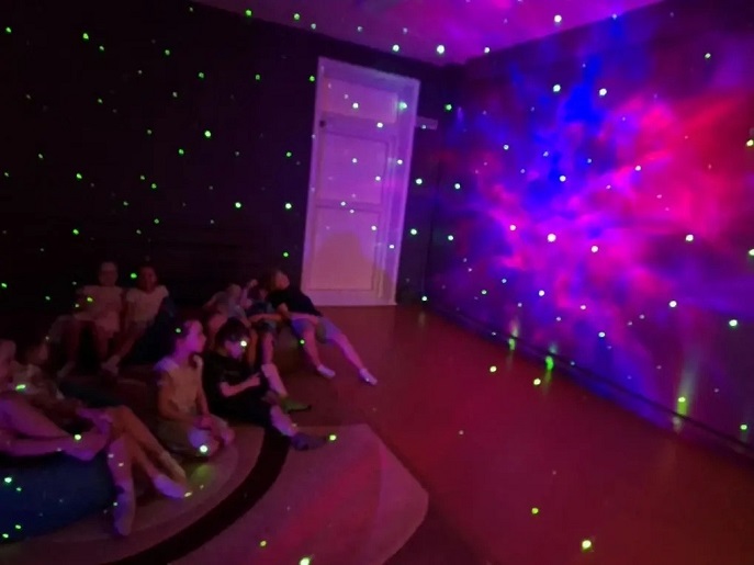 А финальным моментом недели стало настоящее волшебство - в сенсорной комнате мы погасили свет и через проектор отправились в звёздное небо. Дети сидели среди окружённых мерцающих звёзд и переливами галактики… Такое не забывается!