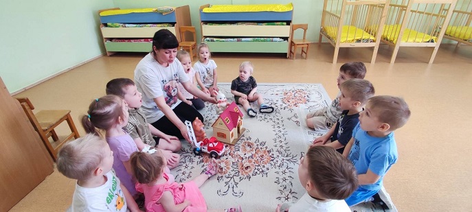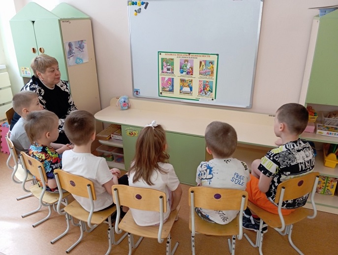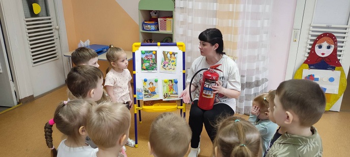Ребята совместно с воспитателем Керовой И. А.: рассматривали картинки «Спички детям - не игрушки!» и узнали, почему нельзя играть со спичками; познакомились с профессией пожарного, посмотрели изображения пожарной машины и огнетушителя; участвовали в игровой ситуации: «у зайчика в домике пожар» — медведь‑пожарный на машине тушит огонь; сами «тушили пожар»: использовали ведёрки с водой и игрушечные огнетушители; отрабатывали эвакуацию при задымлении — закрывали носики и ротики платочками и «выбирались» из опасной зоны.