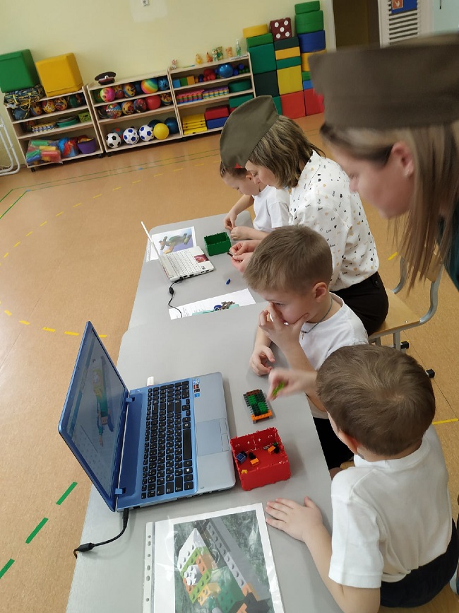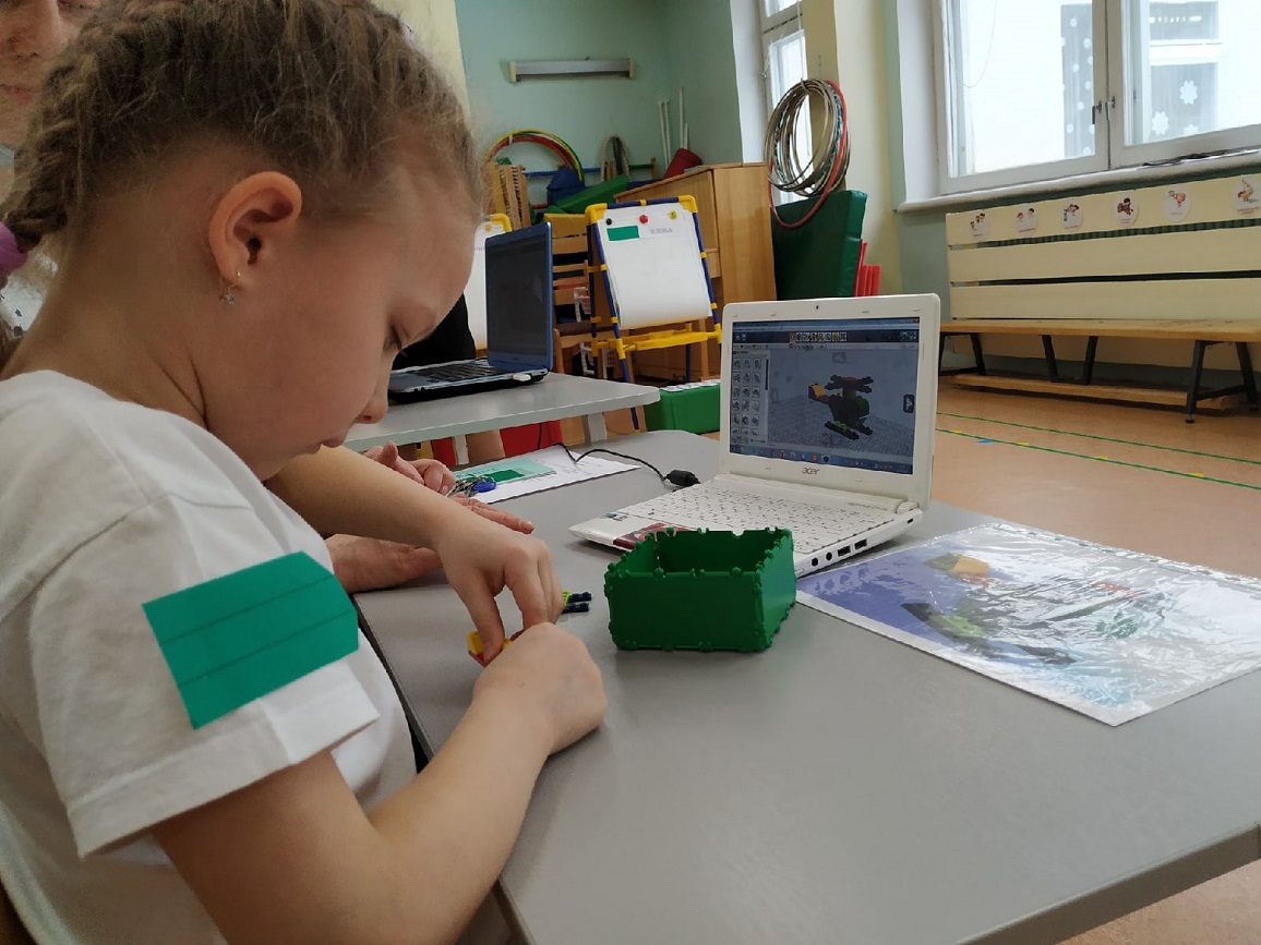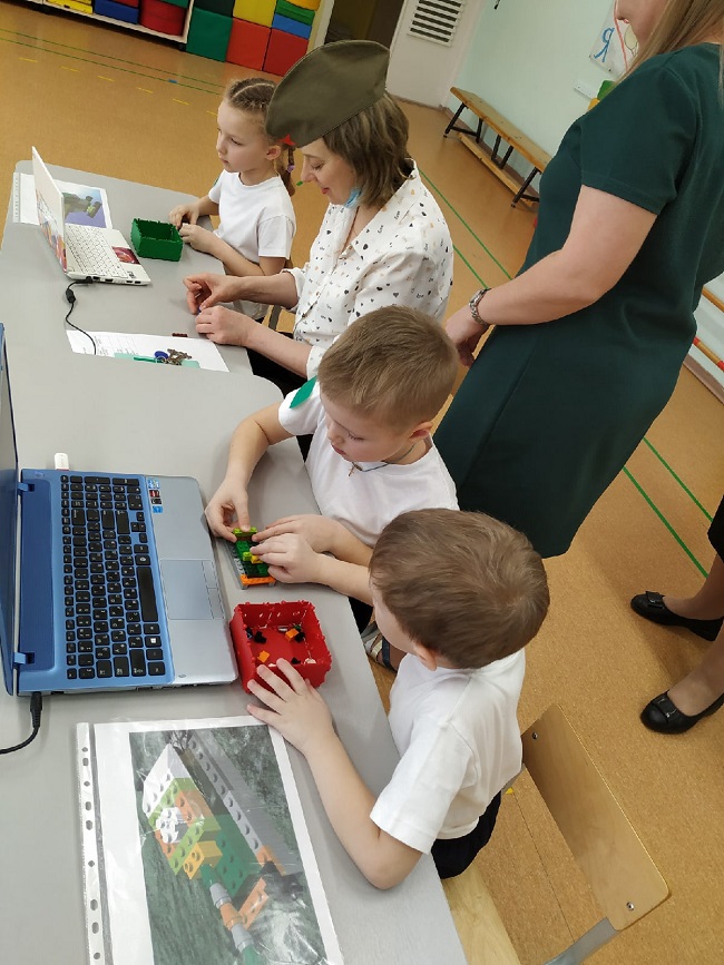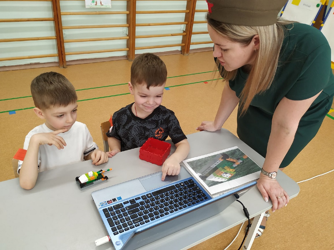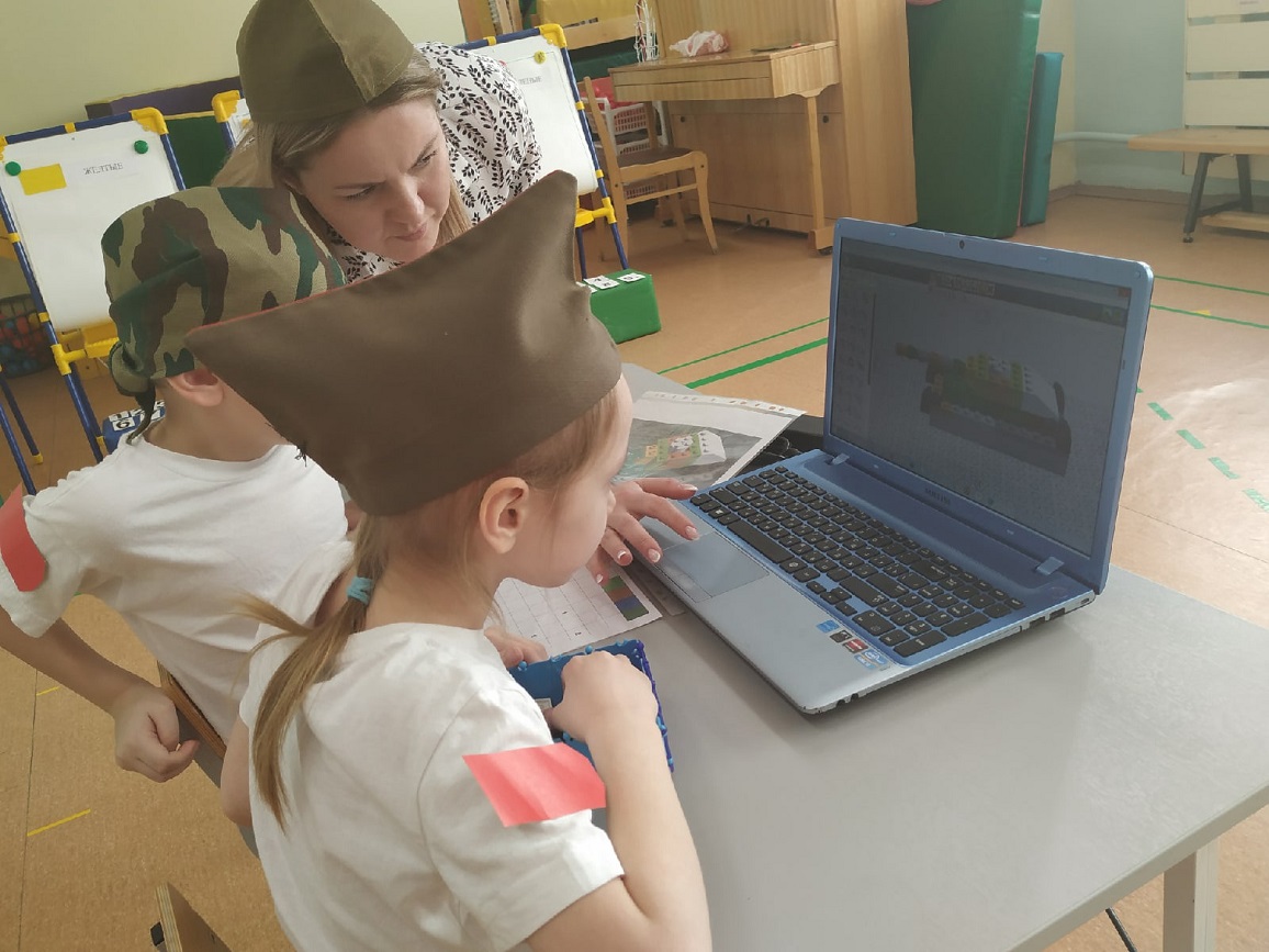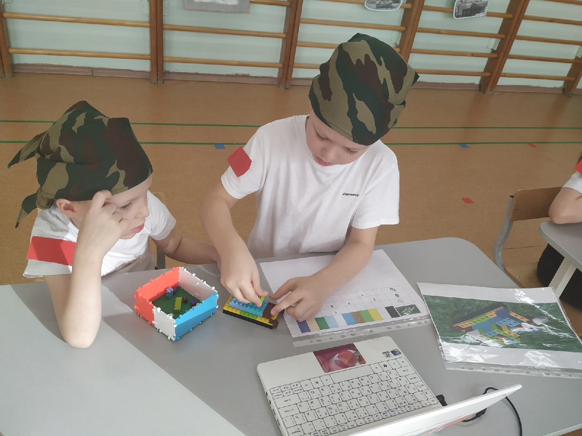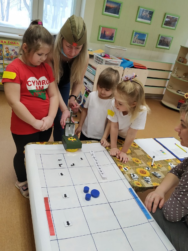 На станции «Школа курсантов» ребята продемонстрировали свою эрудированность в области знаний современных военных профессий в Российской армии (викторина с применением ИКТ-средств), они собрали из разрезных картинок различную военную технику и выложили ее название. На станции «Военные инженеры» курсанты проявили способности к моделированию военной техники (военная инженерия), используя 3-D модели на компьютере. На стации «Саперы на учениях» ребята решали «боевую задачу», ориентируясь и размещая военные объекты на различной местности (пустынной, лесной, горной, водной) по памяти (мнемотехника). На станции «Экстремальное вождение» нужно было доставить груз солдатам на боевой машине пехоты по пересеченной местности со сложными условиями для передвижения (программирование игрушки-робота). Курсанты имели возможность выбрать задания различной сложности. Очень радует, что почти все ребята стремились выполнить задания максимальной сложности либо индивидуально (по желанию), либо с партнером. Итогом было суммарное количество баллов, набранное взводом на станциях.