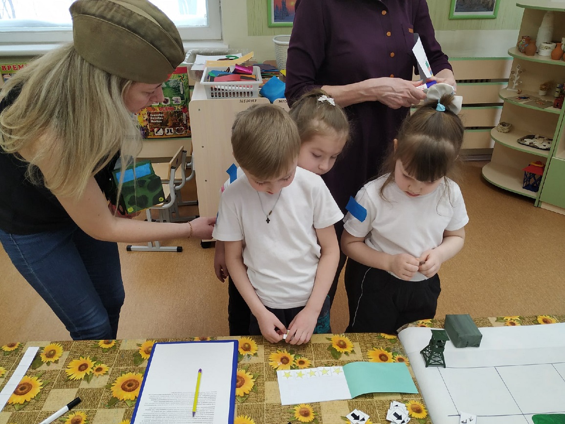 В процессе интеллектуальной игры ребята, в роли курсантов военной академии, проходили испытания на тренировочных учениях, в ходе которых зарабатывали баллы за точность и качество выполнения поставленной задачи. Дети в соответствии с нашивками объединялись в команды - взводы. Каждый взвод получил маршрут следования для выполнения боевой задачи. Курсантам нужно было проявить осведомленность и смекалку, ловкость, военно-инженерные умения, смелость и взаимовыручку.