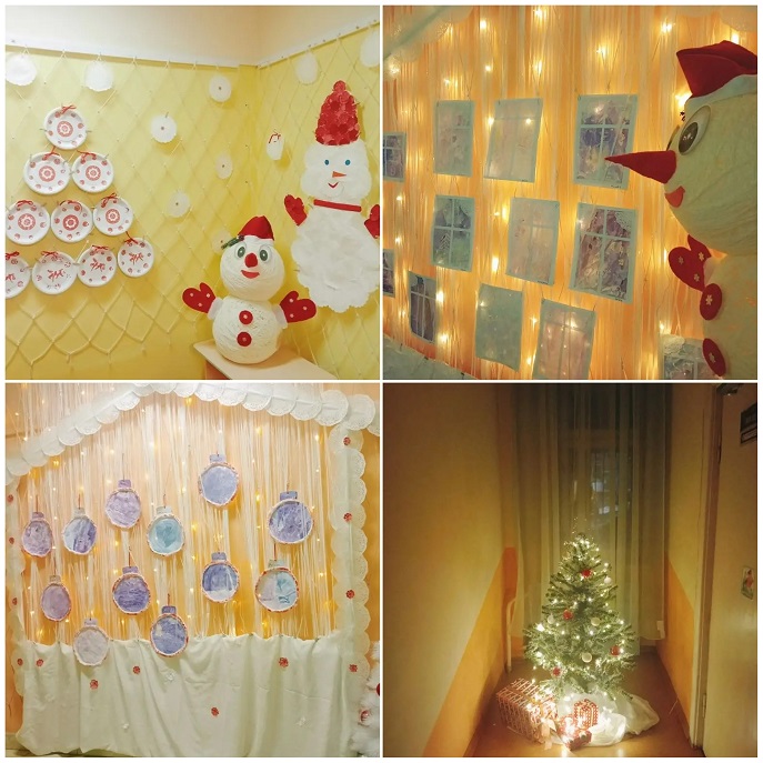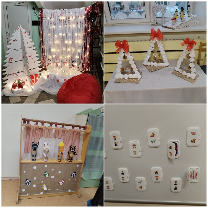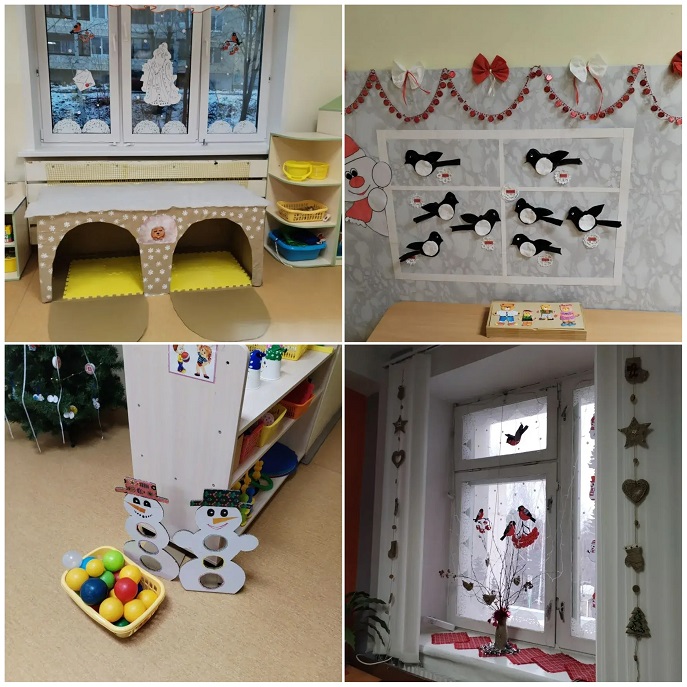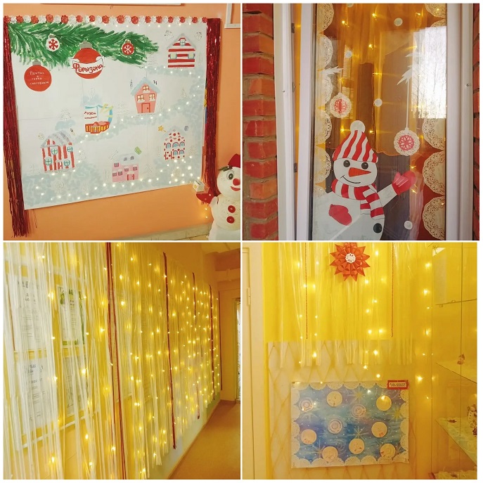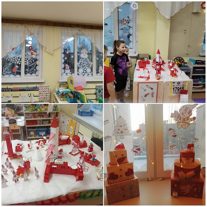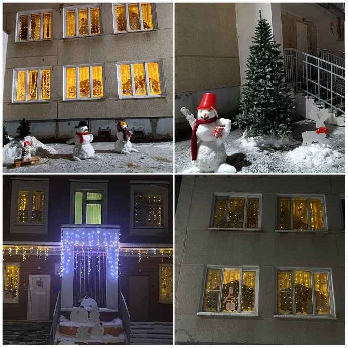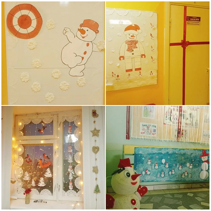 Приближается Новый год, праздник любимый взрослыми и детьми. Самая большая ценность этого периода— ожидание чуда. Детский сад № 51 «Лесовичок» ежедневно наполняется новогодним волшебством, полным ходом идет подготовка к новогодним праздникам. Идея для оформления детского сада в этом году «Снеговичковая семья в красно-белом городе». На «новогодних окнах 2025» - ярко-красные ветки рябины, снеговички в полосатых шарфах, заснеженный белый город, лес и снегири на заснеженных ветках. Веселая семейка Снеговиковв красно-белых одеждах встречает посетителей у входа в детский сад. По карте Красно-белого города и следам, оставленным главным Снеговиком в коридорах, можно легко добраться до любой локации снеговичков–леголят, снеговичков-здоровячков, снеговичков–сказочников и волшебников. В группе «Рябинка» красно-белые элементы заполнили каждый игровой детский центр, а в группе «Ромашка» ребята знакомятся с зимними видами спорта. Юные конструкторы из группы «Василек» создали красно-белый легомакет «Снеговички в г. Устюг в гостях у деда Мороза». И даже у малышей в «Малинке» после веселых опытов со «снегом» бело-пурпурные снеговички раскачиваются на зеленой елочке.
