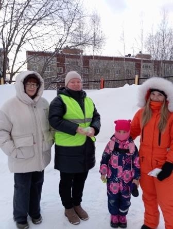 Ранним февральским утром, детей, идущих с мамами и папами в детский сад № 51, встречали родители и воспитатель группы компенсирующей направленности «Ромашка» словами: «Доброе утро! Вас приветствует «Родительский дорожный патруль»! Так начиналась практическая часть акции - дежурство «Дорожного патруля». Родители и дети останавливались, им было интересно, ведь на взрослых были светоотражающие жилеты, а значит, речь пойдёт о ПДД! У детей постарше спрашивали, что они знают о светоотражающих значках, для чего они нужны, присутствуют ли они у них на одежде, как они переходят дорогу. А затем раздавали фликеры детям и памятки родителям «Безопасность детей на дороге».