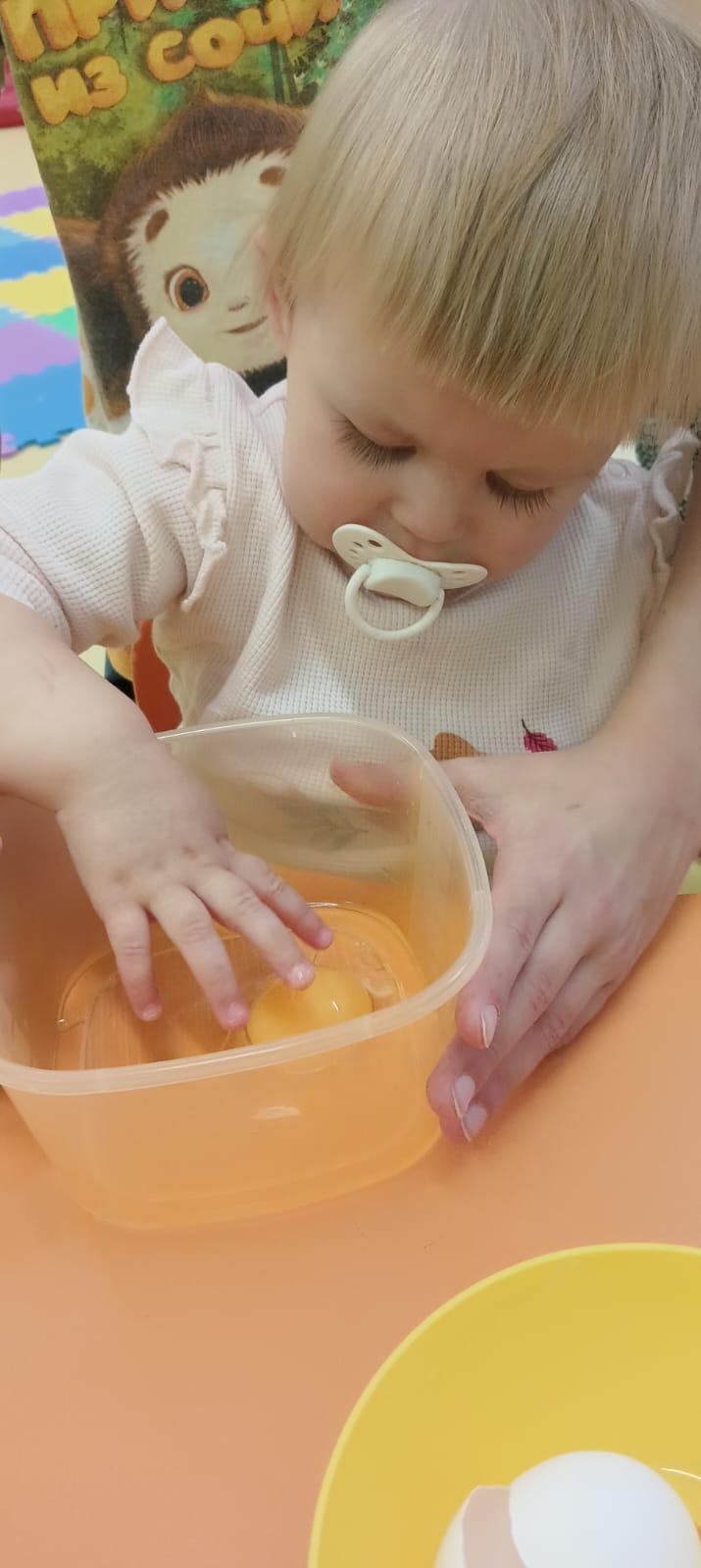 Наши малыши очень быстро подрастают, и у них появляется все больший интерес ко всему, что их окружает. Поэтому для поддержки интереса и получению нового опыта курочка дала малышам яйца, но не золотые, а простые. Наши ребятишки вместе с мамами попробовали разбить их и узнать, что спрятано внутри под скорлупой.