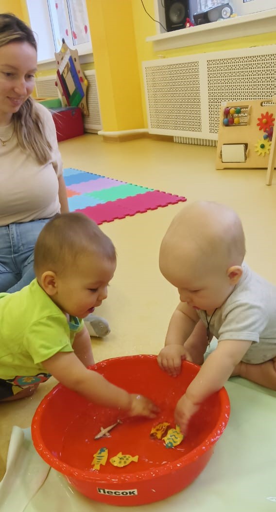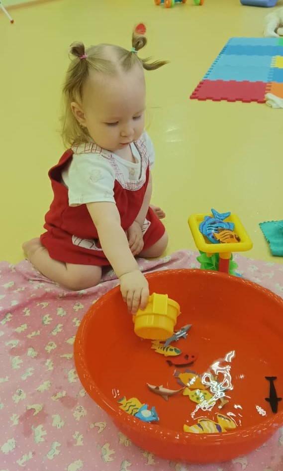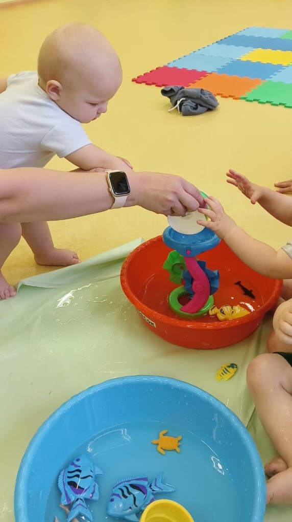 В нашем Консультативно-методическом центре «ОткрытиЯ» очень любознательные малыши. Вместе с мамами любят играть, позвать окружающий мир вокруг. Интересно было наблюдать, как малыши познавали воду. Какая вода на ощупь теплая или холодная, как она льется, пробовали поймать водичку, играли с рыбками.